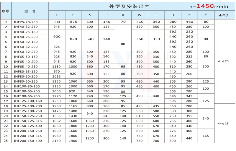 IHF卸酸泵,泵體采用金屬外殼內(nèi)襯氟塑料(F46/PFA),泵蓋、葉輪均用金屬嵌件外包氟塑料(F46/PFA)整體燒結(jié)壓制而成,軸封采用外裝式波紋管機(jī)械密封,靜環(huán)選用氧化鋁陶瓷(或碳化硅),動(dòng)環(huán)采用四氟填充材料,耐腐耐磨密封性好。泵的進(jìn)出口均采用鑄鋼體加固,以增強(qiáng)了泵的耐壓性。 該泵具有耐腐、耐磨、耐高溫、不老化,機(jī)械強(qiáng)度高、運(yùn)轉(zhuǎn)平穩(wěn)、結(jié)構(gòu)先進(jìn)合理、密封性能可靠、拆卸檢修方便、使用壽命長等優(yōu)點(diǎn)。適用于-20℃~120℃溫度條件下輸送任意濃度的硫酸、鹽酸、氫氟酸、硝酸、王水等強(qiáng)酸強(qiáng)腐蝕介質(zhì)而不受損。