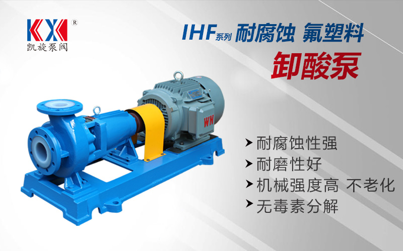 卸酸泵又叫耐酸泵是輸送硫酸、鹽酸、硝酸、氫氟酸等酸性介質(zhì)泵的總稱。酸具有很強(qiáng)的腐蝕性,所以卸酸泵需要選用耐酸耐腐的材質(zhì),一般卸酸泵均采用氟塑料做為泵的過流部件材料,氟塑料是各種含氟聚合物的總稱,主要有聚四氟乙烯(PTFE,俗稱F40)、聚全氟乙丙烯(FEP,俗稱F46)共聚物、聚三氟氯乙烯(PCTFE)、聚全氟烷氧基(PFA)樹脂和聚偏氟乙烯(PVDF)等各種含氟聚合物材料,其中聚四氟乙烯,可以耐任何酸性介質(zhì)的腐蝕,被稱為塑料王。