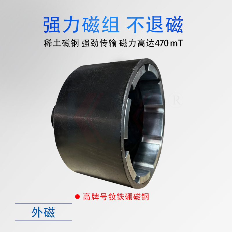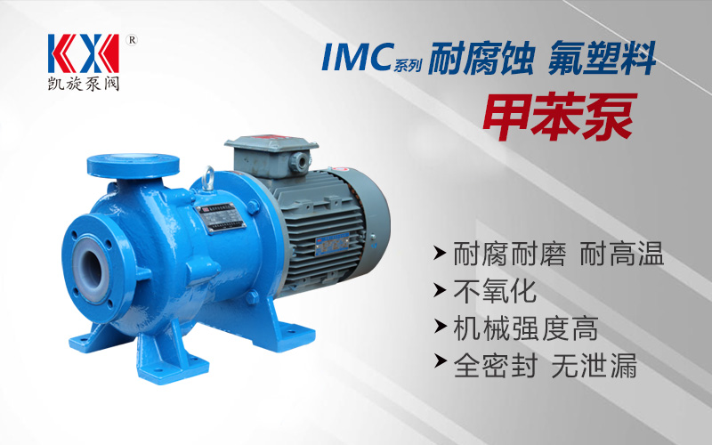 IMC型甲苯泵,過流部件使用氟塑料及合金復(fù)合材料制造,是應(yīng)用磁力學(xué)原理,利用內(nèi)外永磁體傳動(dòng),實(shí)現(xiàn)扭矩?zé)o接觸傳遞,當(dāng)電動(dòng)機(jī)帶動(dòng)外轉(zhuǎn)子總成旋轉(zhuǎn)時(shí),通過磁場(chǎng)的作用磁力線穿過隔離套帶動(dòng)內(nèi)轉(zhuǎn)子總成和葉輪同步旋轉(zhuǎn),外轉(zhuǎn)子旋轉(zhuǎn)時(shí)隔離套靜止,隔離套將介質(zhì)完全密封,從而達(dá)到無泄漏輸送介質(zhì)的目的。解決了機(jī)械傳動(dòng)泵的軸封跑、冒、滴現(xiàn)象。非常適合輸送任意濃度的酸、堿、有機(jī)溶劑、易燃易爆和貴重液體等。